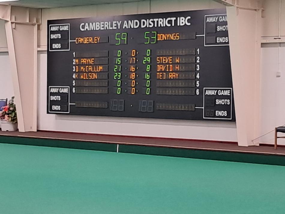 Donyngs were only one shot behind after ten ends, trailing by 37 shots to 38. In the next five ends Donyngs struggled overall to find some momentum to creep closer to Camberley and were down by 46 shots to 54, after fifteen ends. Unfortunately, on this occasion, the last three ends turned out to be unsuccessful for the Donyngs Dragons and despite outscoring Camberley by 8 shots to 7, Camberley were just better, and some say luckier, on the day.