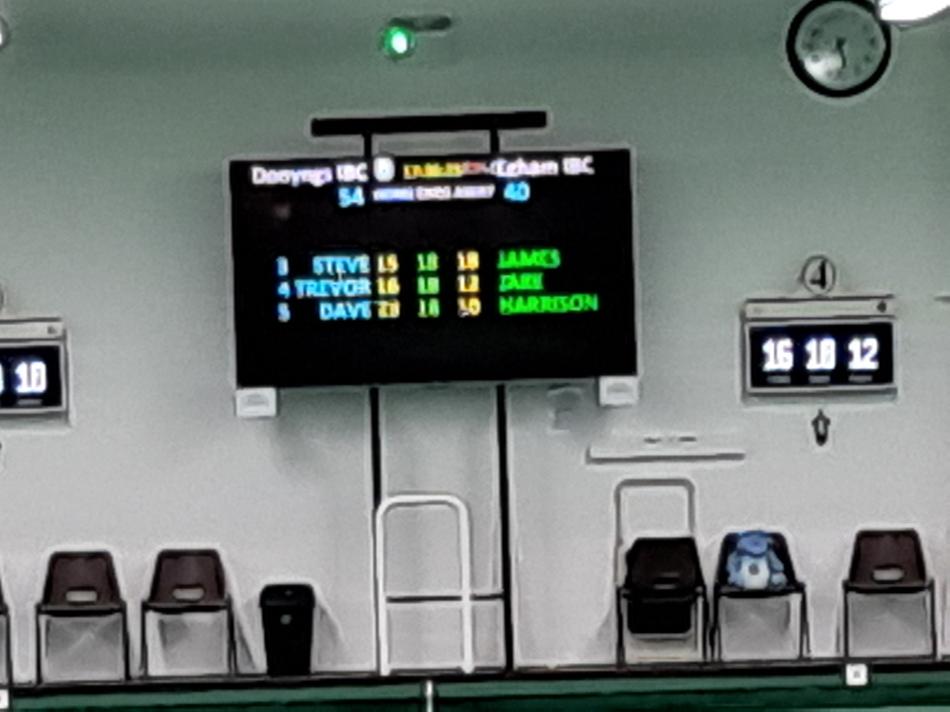 Rink 4 – With Paul “Running Dragon” Eales and Trevor “Retro Dragon” Pocock making their Surrey league debuts’ for this year in the rink, they got off to a fantastic start, winning five of the first six ends to lead by 6 shots to 2. The next six ends saw the dragons maintain their lead, against some good bowling from the Egham boys, winning three of the next six ends played. Donyng’s led by 10 shots to 7 after twelve ends. Donyngs then won two of the last six ends to win by 16 shots to 12 with Donyngs winning ten of the eighteen ends played at an average score of 1.6 shots per end won.